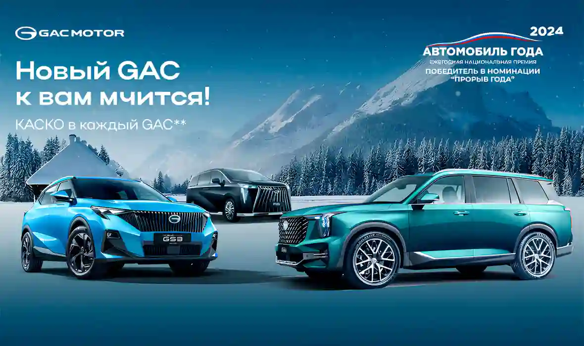 С 9 по 22 декабря 2024 года для всех покупателей моделей GAC действует специальная акция на КАСКО. В рамках акции «Новый GAC к вам мчится!» покупатели городского кроссовера GAC GS3, самого популярного в России полноразмерного кроссовера GAC GS8 и премиального минивэна GAC M8 могут получить скидку на страховой полис в размере 50 000 рублей.